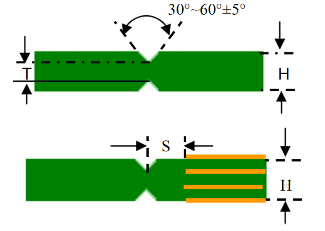 ▲V-CUT的残留厚度,一般设计在PCB厚度的30%,如PCB为1MM,V-CUT残留厚度应为0.35左右为宜。(当然还要取决于PCB上承载的元器件的重量,尤其是双面板)