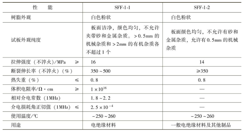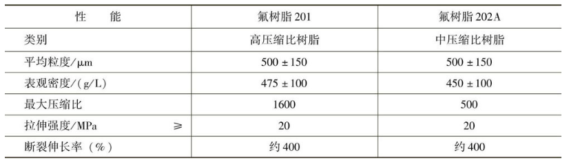 表1 采用悬浮法生产的PTFE树脂的基本性能