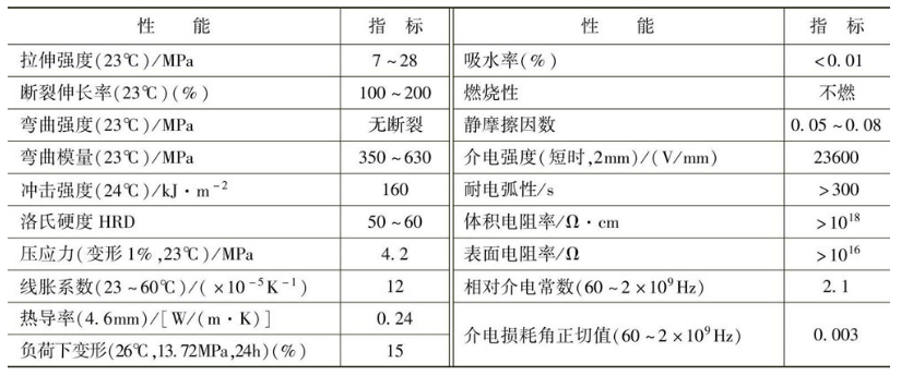 在其他特性方面,PTFE 的硬度本身较低,但可通过添加填料来提高;它的摩擦因数在所有固体材料中是最小的,且不受温度变化影响,同时静摩擦因数小于动摩擦因数,因此 PTFE 轴承启动平稳、阻力小,适合作为低速高负荷轴承,低速转动时不会产生噪声。其热导率不高,加入金属填料后可适当改善;熔点为 327℃,热变形温度按 ISO R75 标准,A 法测得为 50~60℃,B 法为 130~140℃,使用温度范围则在 - 200~260℃,且具有不燃性。在热塑性塑料中,PTFE 的热稳定性最为出色,204~327℃温度区间内的降解程度极低,无需额外添加加热稳定剂。