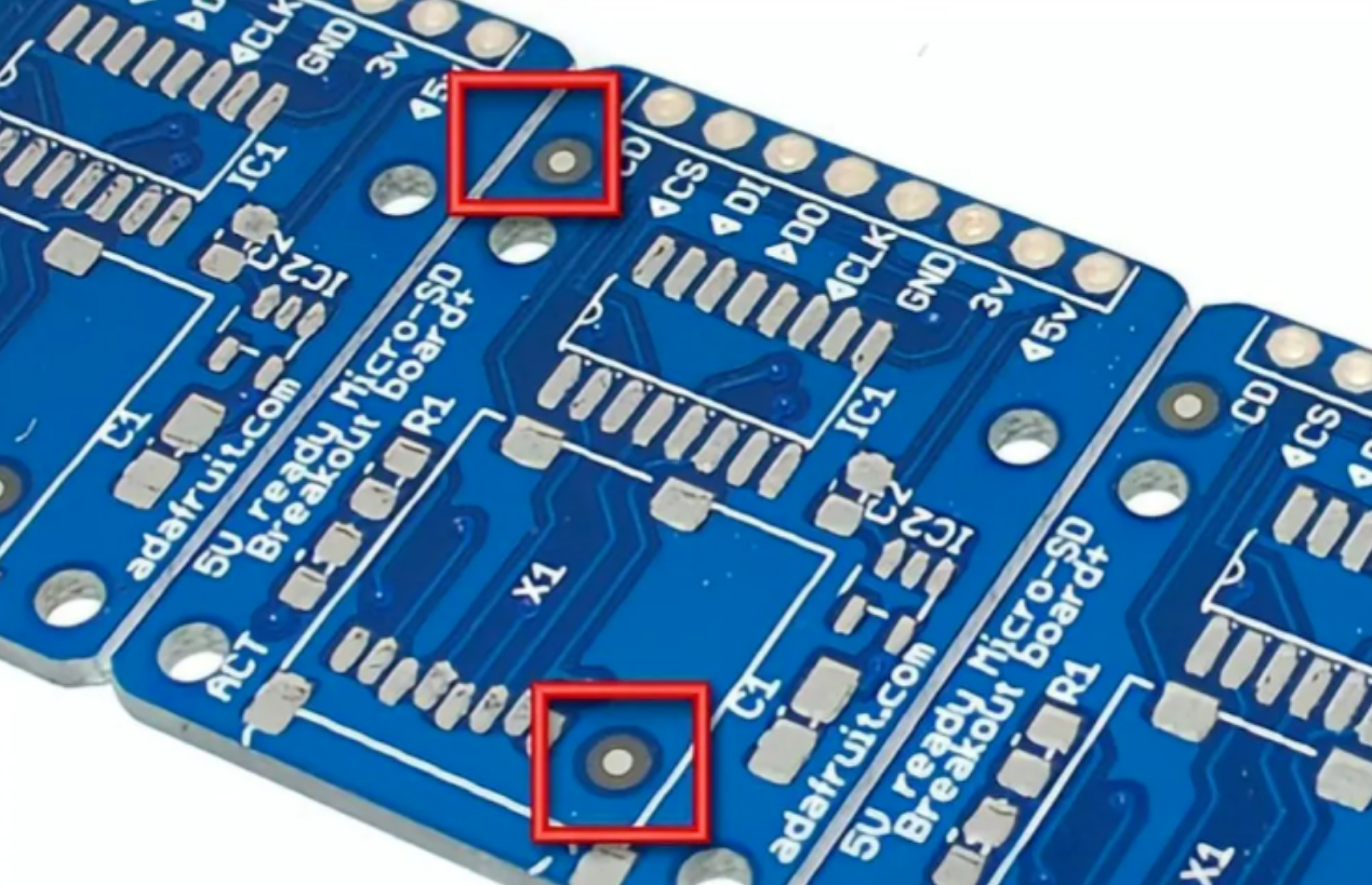 需要在PCBA的四个角或对角线上,形成多点面定位,定位准确,距离越远越好。
