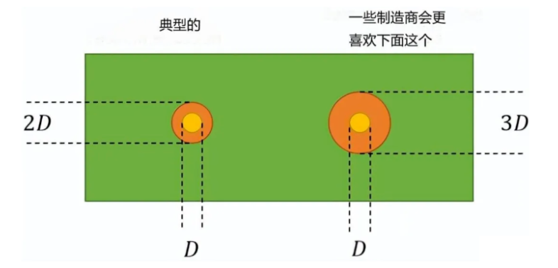 局部基准往往小至 1 毫米,阻焊层开口为 2 毫米,上图中显示的 D-3D 规则,是因为有些制造商比较喜欢这种较大的阻焊层开口。