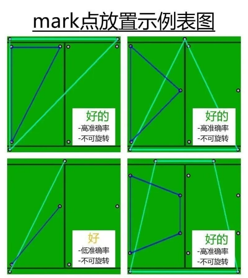 当 mark点标记与印制板基板材料之间存在高对比度时,可实现最佳性能。对于所有标记点,内部背景必须相同。