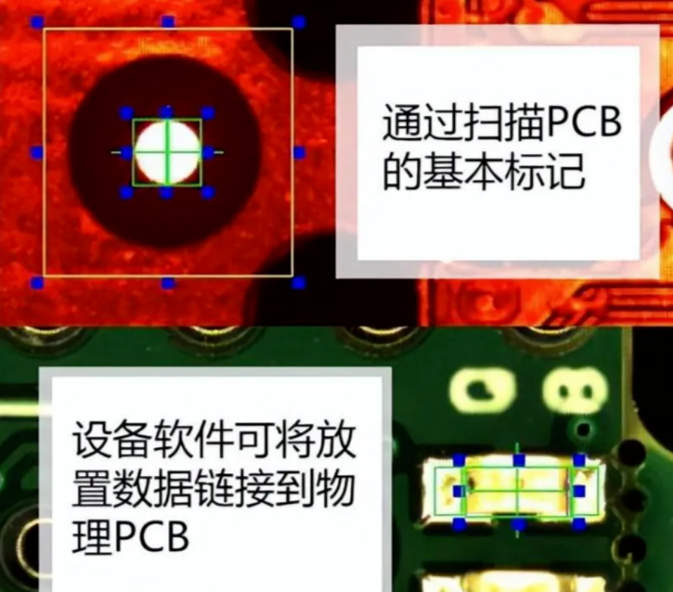 不过大多数机器在技术上不会读取放置在 PCB 上的内容,相反,它识别mark 点焊盘的反射。