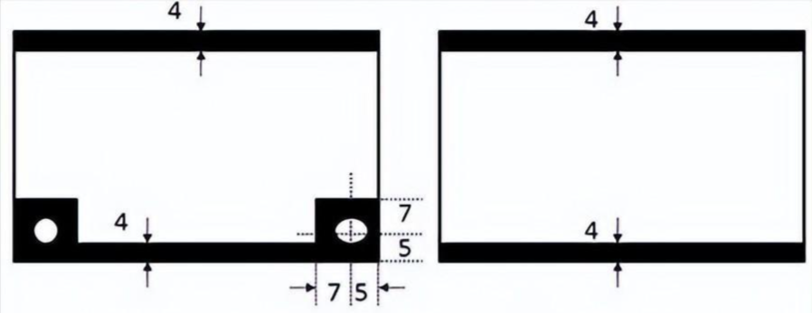 mark点 的布局位置由贴片机的PCB传输方式决定。当使用导轨传送PCB时,Mark不能放置在靠近夹持面或定位孔的位置,具体尺寸因贴片机而异。一般要求如下图 所示。