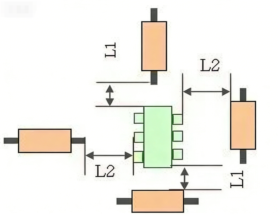 异种器件:≥0.13*h+0.3mm(h为周围近邻元件最大高度差)