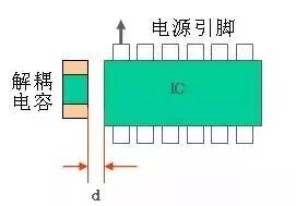 每个IC的电源端口附近都需要摆放去耦电容,且位置尽可能靠近IC的电源口,当一个芯片有多个电源口的时候,每个口都要布置去耦电容。