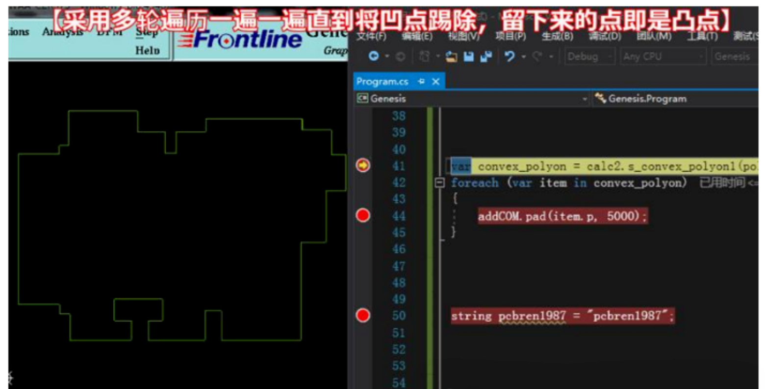看下图: PCB外形倒圆角的点,刚好就是我们凸包需求出的点,接下来我们将玩转凸包了,只要求出凸包,那么就可以实现PCB板边倒圆角啦。